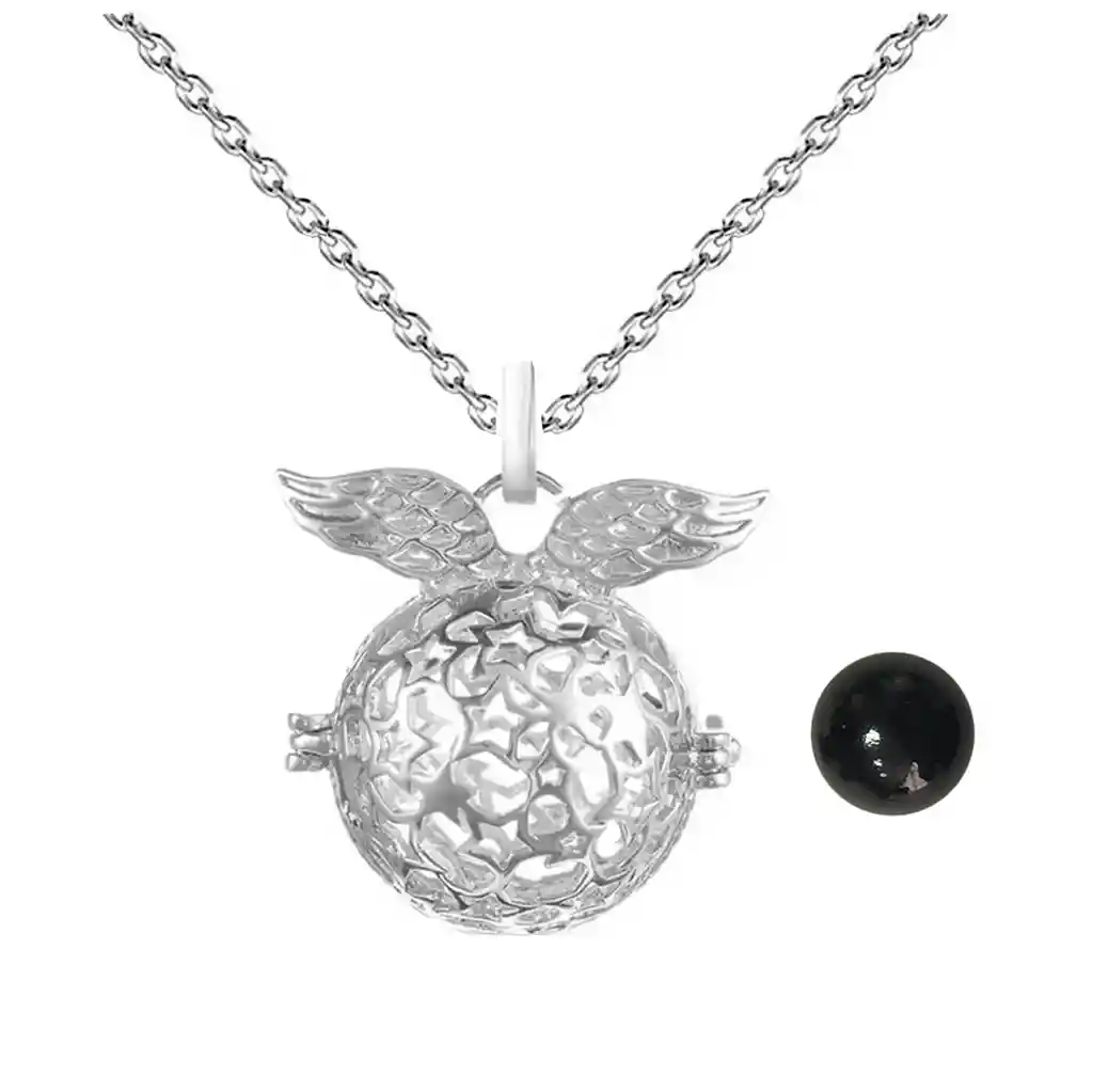 El llamador de ángeles con cascabel es una elegante y significativa pieza de joyería en forma de esfera, que en su interior contiene una pequeña esfera de color con un sonido similar a una campanita. Según la leyenda, este amuleto de protección atrae la presencia del ángel de la guarda de quien lo porta, brindando bienestar y armonía. Se recomienda su uso personal para conservar su energía y significado especial, ya que cada color de la esfera representa una intención diferente, permitiendo elegir el que mejor se adapte a las necesidades del usuario. Cada color del llamador de ángeles tiene un significado especial para quien lo porta: Plateado: Protección y equilibrio. Dorado: Abundancia y éxito. Azul Platinum: Serenidad y paz interior. Roja Platinum: Energía y pasión. Lila Platinum: Espiritualidad y transformación. Rosa: Amor y dulzura. Fucsia: Vitalidad y entusiasmo. Azul Oscuro: Sabiduría y confianza. Violeta: Intuición y crecimiento espiritual. Blanco: Pureza y armonía. Amarillo: Alegría y creatividad. Naranja: Entusiasmo y optimismo. Rojo: Fuerza y valentía. Negro: Protección y poder personal. Cada persona puede elegir el color que mejor se adapte a sus necesidades y deseos. //// El collar incluye estuche - El precio corresponde a un llamador con un solo cascabel //// Ficha Técnica Material cadena : Acero Inoxidable Material dije: Aleación de Zinc Metal Material del Cascabel: ABS - Metal Longitud cadena: 45 cm Dimensiones del dije: 3 cm x 3 cm Dimensiones del cascabel: 1.5 cm x 1.5 cm Para defectos de fábrica o derecho de retracto: Le recomendamos revisar el producto inmediatamente al recibirlo y antes de usarlo. No se aceptan solicitudes de retracto ni reclamaciones por defectos de fábrica después de haber sido utilizado. Cuenta con un plazo máximo de 5 días para reportar cualquier defecto de fábrica, como mal funcionamiento, piezas faltantes, rotas o cualquier otra anomalía. Para realizar una devolución, el producto debe entregarse en su empaque original en buen estado, con todos sus accesorios, documentos y sin daños. Cuidados y recomendaciones para conservar el producto: Evite el contacto directo con perfumes o cremas, no lo exponga al agua, manipúlelo con cuidado para prevenir caídas y límpielo regularmente para retirar la suciedad.