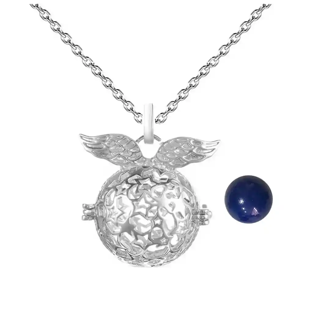 El llamador de ángeles con cascabel es una elegante y significativa pieza de joyería en forma de esfera, que en su interior contiene una pequeña esfera de color con un sonido similar a una campanita. Según la leyenda, este amuleto de protección atrae la presencia del ángel de la guarda de quien lo porta, brindando bienestar y armonía. Se recomienda su uso personal para conservar su energía y significado especial, ya que cada color de la esfera representa una intención diferente, permitiendo elegir el que mejor se adapte a las necesidades del usuario. Cada color del llamador de ángeles tiene un significado especial para quien lo porta: Plateado: Protección y equilibrio. Dorado: Abundancia y éxito. Azul Platinum: Serenidad y paz interior. Roja Platinum: Energía y pasión. Lila Platinum: Espiritualidad y transformación. Rosa: Amor y dulzura. Fucsia: Vitalidad y entusiasmo. Azul Oscuro: Sabiduría y confianza. Violeta: Intuición y crecimiento espiritual. Blanco: Pureza y armonía. Amarillo: Alegría y creatividad. Naranja: Entusiasmo y optimismo. Rojo: Fuerza y valentía. Negro: Protección y poder personal. Cada persona puede elegir el color que mejor se adapte a sus necesidades y deseos. //// El collar incluye estuche - El precio corresponde a un llamador con un solo cascabel //// Ficha Técnica Material cadena : Acero Inoxidable Material dije: Aleación de Zinc Metal Material del Cascabel: ABS - Metal Longitud cadena: 45 cm Dimensiones del dije: 3 cm x 3 cm Dimensiones del cascabel: 1.5 cm x 1.5 cm Para defectos de fábrica o derecho de retracto: Le recomendamos revisar el producto inmediatamente al recibirlo y antes de usarlo. No se aceptan solicitudes de retracto ni reclamaciones por defectos de fábrica después de haber sido utilizado. Cuenta con un plazo máximo de 5 días para reportar cualquier defecto de fábrica, como mal funcionamiento, piezas faltantes, rotas o cualquier otra anomalía. Para realizar una devolución, el producto debe entregarse en su empaque original en buen estado, con todos sus accesorios, documentos y sin daños. Cuidados y recomendaciones para conservar el producto: Evite el contacto directo con perfumes o cremas, no lo exponga al agua, manipúlelo con cuidado para prevenir caídas y límpielo regularmente para retirar la suciedad.