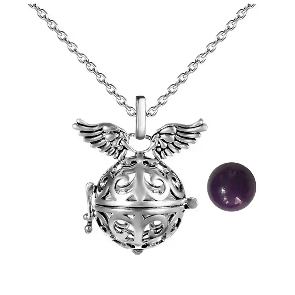 El llamador de ángeles con cascabel es una elegante y significativa pieza de joyería en forma de esfera, que en su interior contiene una pequeña esfera de color con un sonido similar a una campanita. Según la leyenda, este amuleto de protección atrae la presencia del ángel de la guarda de quien lo porta, brindando bienestar y armonía. Se recomienda su uso personal para conservar su energía y significado especial, ya que cada color de la esfera representa una intención diferente, permitiendo elegir el que mejor se adapte a las necesidades del usuario. Cada color del llamador de ángeles tiene un significado especial para quien lo porta: Plateado: Protección y equilibrio. Dorado: Abundancia y éxito. Azul Platinum: Serenidad y paz interior. Roja Platinum: Energía y pasión. Lila Platinum: Espiritualidad y transformación. Rosa: Amor y dulzura. Fucsia: Vitalidad y entusiasmo. Azul Oscuro: Sabiduría y confianza. Violeta: Intuición y crecimiento espiritual. Blanco: Pureza y armonía. Amarillo: Alegría y creatividad. Naranja: Entusiasmo y optimismo. Rojo: Fuerza y valentía. Negro: Protección y poder personal. Cada persona puede elegir el color que mejor se adapte a sus necesidades y deseos. //// El collar incluye estuche - El precio corresponde a un llamador con un solo cascabel //// Ficha Técnica Material cadena : Acero Inoxidable Material dije: Aleación de Zinc Metal Material del Cascabel: ABS - Metal Longitud cadena: 45 cm Dimensiones del dije: 3 cm x 3 cm Dimensiones del cascabel: 1.5 cm x 1.5 cm Para defectos de fábrica o derecho de retracto: Le recomendamos revisar el producto inmediatamente al recibirlo y antes de usarlo. No se aceptan solicitudes de retracto ni reclamaciones por defectos de fábrica después de haber sido utilizado. Cuenta con un plazo máximo de 5 días para reportar cualquier defecto de fábrica, como mal funcionamiento, piezas faltantes, rotas o cualquier otra anomalía. Para realizar una devolución, el producto debe entregarse en su empaque original en buen estado, con todos sus accesorios, documentos y sin daños. Cuidados y recomendaciones para conservar el producto: Evite el contacto directo con perfumes o cremas, no lo exponga al agua, manipúlelo con cuidado para prevenir caídas y límpielo regularmente para retirar la suciedad.