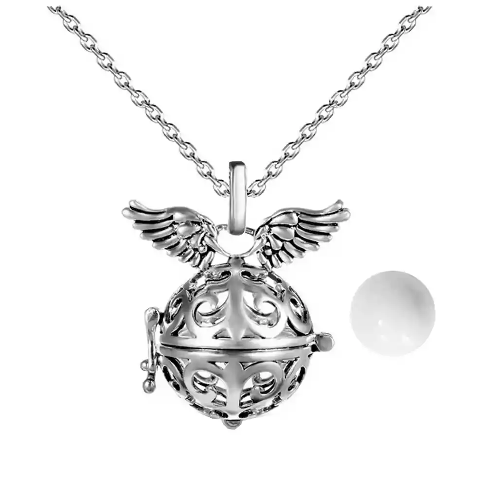 El llamador de ángeles con cascabel es una elegante y significativa pieza de joyería en forma de esfera, que en su interior contiene una pequeña esfera de color con un sonido similar a una campanita. Según la leyenda, este amuleto de protección atrae la presencia del ángel de la guarda de quien lo porta, brindando bienestar y armonía. Se recomienda su uso personal para conservar su energía y significado especial, ya que cada color de la esfera representa una intención diferente, permitiendo elegir el que mejor se adapte a las necesidades del usuario. Cada color del llamador de ángeles tiene un significado especial para quien lo porta: Plateado: Protección y equilibrio. Dorado: Abundancia y éxito. Azul Platinum: Serenidad y paz interior. Roja Platinum: Energía y pasión. Lila Platinum: Espiritualidad y transformación. Rosa: Amor y dulzura. Fucsia: Vitalidad y entusiasmo. Azul Oscuro: Sabiduría y confianza. Violeta: Intuición y crecimiento espiritual. Blanco: Pureza y armonía. Amarillo: Alegría y creatividad. Naranja: Entusiasmo y optimismo. Rojo: Fuerza y valentía. Negro: Protección y poder personal. Cada persona puede elegir el color que mejor se adapte a sus necesidades y deseos. //// El collar incluye estuche - El precio corresponde a un llamador con un solo cascabel //// Ficha Técnica Material cadena : Acero Inoxidable Material dije: Aleación de Zinc Metal Material del Cascabel: ABS - Metal Longitud cadena: 45 cm Dimensiones del dije: 3 cm x 3 cm Dimensiones del cascabel: 1.5 cm x 1.5 cm Para defectos de fábrica o derecho de retracto: Le recomendamos revisar el producto inmediatamente al recibirlo y antes de usarlo. No se aceptan solicitudes de retracto ni reclamaciones por defectos de fábrica después de haber sido utilizado. Cuenta con un plazo máximo de 5 días para reportar cualquier defecto de fábrica, como mal funcionamiento, piezas faltantes, rotas o cualquier otra anomalía. Para realizar una devolución, el producto debe entregarse en su empaque original en buen estado, con todos sus accesorios, documentos y sin daños. Cuidados y recomendaciones para conservar el producto: Evite el contacto directo con perfumes o cremas, no lo exponga al agua, manipúlelo con cuidado para prevenir caídas y límpielo regularmente para retirar la suciedad.