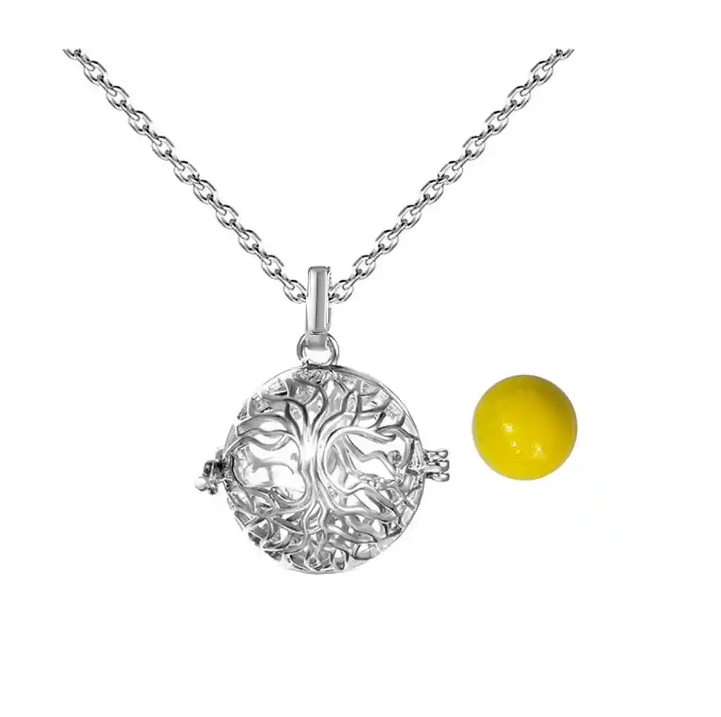 El llamador de ángeles con cascabel es una elegante y significativa pieza de joyería en forma de esfera, que en su interior contiene una pequeña esfera de color con un sonido similar a una campanita. Según la leyenda, este amuleto de protección atrae la presencia del ángel de la guarda de quien lo porta, brindando bienestar y armonía. Se recomienda su uso personal para conservar su energía y significado especial, ya que cada color de la esfera representa una intención diferente, permitiendo elegir el que mejor se adapte a las necesidades del usuario. Cada color del llamador de ángeles tiene un significado especial para quien lo porta: Plateado: Protección y equilibrio. Dorado: Abundancia y éxito. Azul Platinum: Serenidad y paz interior. Roja Platinum: Energía y pasión. Lila Platinum: Espiritualidad y transformación. Rosa: Amor y dulzura. Fucsia: Vitalidad y entusiasmo. Azul Oscuro: Sabiduría y confianza. Violeta: Intuición y crecimiento espiritual. Blanco: Pureza y armonía. Amarillo: Alegría y creatividad. Naranja: Entusiasmo y optimismo. Rojo: Fuerza y valentía. Negro: Protección y poder personal. Cada persona puede elegir el color que mejor se adapte a sus necesidades y deseos. //// El collar incluye estuche - El precio corresponde a un llamador con un solo cascabel //// Ficha Técnica Material cadena : Acero Inoxidable Material dije: Aleación de Zinc Metal Material del Cascabel: ABS - Metal Longitud cadena: 45 cm Dimensiones del dije: 3 cm x 3 cm Dimensiones del cascabel: 1.5 cm x 1.5 cm Para defectos de fábrica o derecho de retracto: Le recomendamos revisar el producto inmediatamente al recibirlo y antes de usarlo. No se aceptan solicitudes de retracto ni reclamaciones por defectos de fábrica después de haber sido utilizado. Cuenta con un plazo máximo de 5 días para reportar cualquier defecto de fábrica, como mal funcionamiento, piezas faltantes, rotas o cualquier otra anomalía. Para realizar una devolución, el producto debe entregarse en su empaque original en buen estado, con todos sus accesorios, documentos y sin daños. Cuidados y recomendaciones para conservar el producto: Evite el contacto directo con perfumes o cremas, no lo exponga al agua, manipúlelo con cuidado para prevenir caídas y límpielo regularmente para retirar la suciedad.