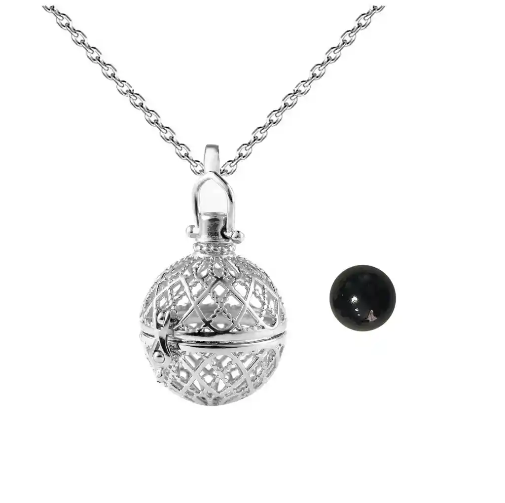 El llamador de ángeles con cascabel es una elegante y significativa pieza de joyería en forma de esfera, que en su interior contiene una pequeña esfera de color con un sonido similar a una campanita. Según la leyenda, este amuleto de protección atrae la presencia del ángel de la guarda de quien lo porta, brindando bienestar y armonía. Se recomienda su uso personal para conservar su energía y significado especial, ya que cada color de la esfera representa una intención diferente, permitiendo elegir el que mejor se adapte a las necesidades del usuario. Cada color del llamador de ángeles tiene un significado especial para quien lo porta: Plateado: Protección y equilibrio. Dorado: Abundancia y éxito. Azul Platinum: Serenidad y paz interior. Roja Platinum: Energía y pasión. Lila Platinum: Espiritualidad y transformación. Rosa: Amor y dulzura. Fucsia: Vitalidad y entusiasmo. Azul Oscuro: Sabiduría y confianza. Violeta: Intuición y crecimiento espiritual. Blanco: Pureza y armonía. Amarillo: Alegría y creatividad. Naranja: Entusiasmo y optimismo. Rojo: Fuerza y valentía. Negro: Protección y poder personal. Cada persona puede elegir el color que mejor se adapte a sus necesidades y deseos. //// El collar incluye estuche - El precio corresponde a un llamador con un solo cascabel //// Ficha Técnica Material cadena : Acero Inoxidable Material dije: Aleación de Zinc Metal Material del Cascabel: ABS - Metal Longitud cadena: 45 cm Dimensiones del dije: 4 cm x 3 cm Dimensiones del cascabel: 1.5 cm x 1.5 cm Para defectos de fábrica o derecho de retracto: Le recomendamos revisar el producto inmediatamente al recibirlo y antes de usarlo. No se aceptan solicitudes de retracto ni reclamaciones por defectos de fábrica después de haber sido utilizado. Cuenta con un plazo máximo de 5 días para reportar cualquier defecto de fábrica, como mal funcionamiento, piezas faltantes, rotas o cualquier otra anomalía. Para realizar una devolución, el producto debe entregarse en su empaque original en buen estado, con todos sus accesorios, documentos y sin daños. Cuidados y recomendaciones para conservar el producto: Evite el contacto directo con perfumes o cremas, no lo exponga al agua, manipúlelo con cuidado para prevenir caídas y límpielo regularmente para retirar la suciedad.