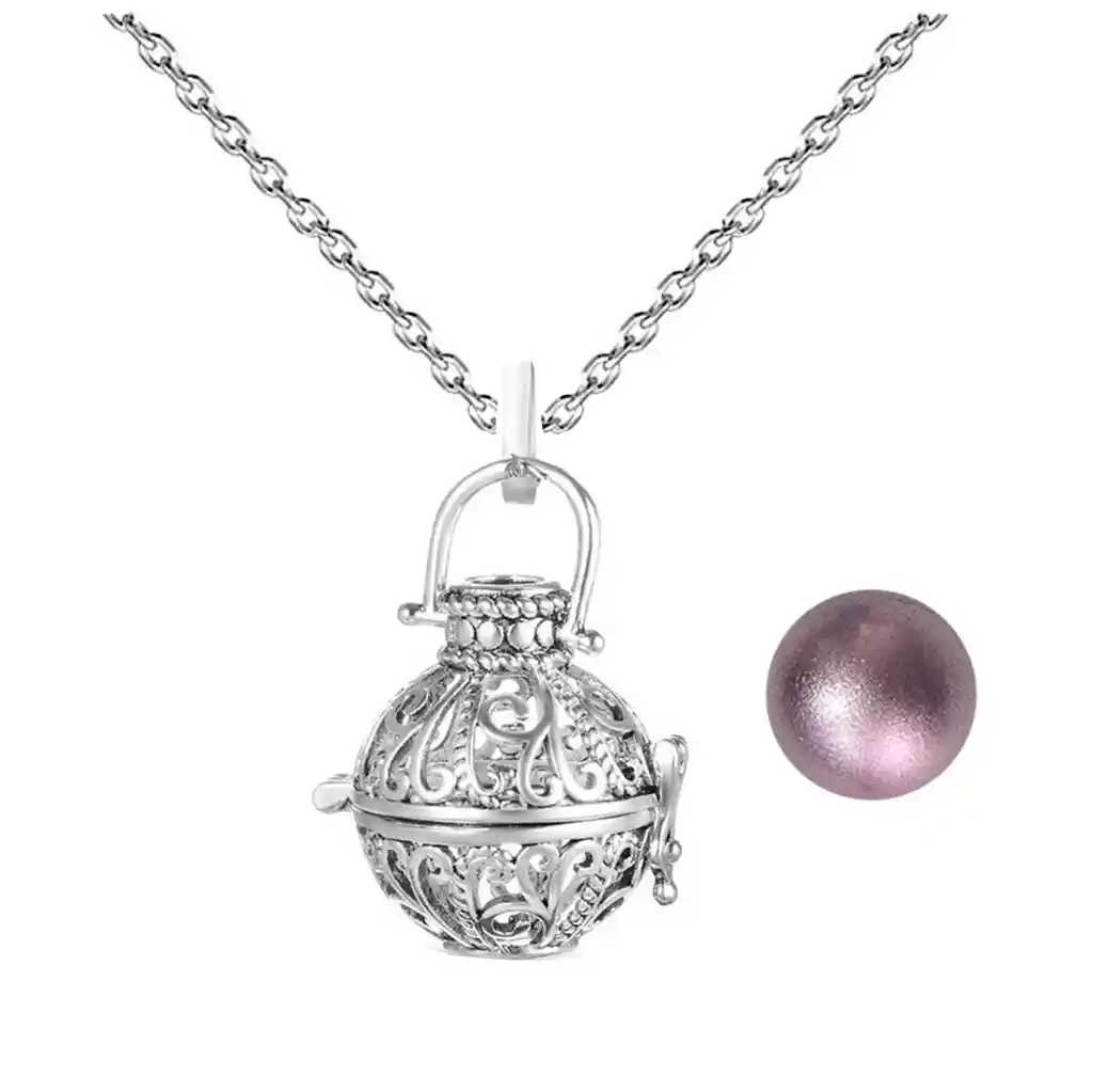 El llamador de ángeles con cascabel es una elegante y significativa pieza de joyería en forma de esfera, que en su interior contiene una pequeña esfera de color con un sonido similar a una campanita. Según la leyenda, este amuleto de protección atrae la presencia del ángel de la guarda de quien lo porta, brindando bienestar y armonía. Se recomienda su uso personal para conservar su energía y significado especial, ya que cada color de la esfera representa una intención diferente, permitiendo elegir el que mejor se adapte a las necesidades del usuario.Cada color del llamador de ángeles tiene un significado especial para quien lo porta:Lila Platinum: Espiritualidad y transformación.Cada persona puede elegir el color que mejor se adapte a sus necesidades y deseos.//// El collar incluye estuche - El precio corresponde a un llamador con un solo cascabel ////Ficha TécnicaMaterial cadena : Acero InoxidableMaterial dije: Aleación de Zinc MetalMaterial del Cascabel: ABS - MetalLongitud cadena: 45 cmDimensiones del dije: 3 cm x 3 cmDimensiones del cascabel: 1.5 cm x 1.5 cmPara defectos de fábrica o derecho de retracto: Le recomendamos revisar el producto inmediatamente al recibirlo y antes de usarlo. No se aceptan solicitudes de retracto ni reclamaciones por defectos de fábrica después de haber sido utilizado. Cuenta con un plazo máximo de 5 días para reportar cualquier defecto de fábrica, como mal funcionamiento, piezas faltantes, rotas o cualquier otra anomalía.Para realizar una devolución, el producto debe entregarse en su empaque original en buen estado, con todos sus accesorios, documentos y sin daños.Cuidados y recomendaciones para conservar el producto: Evite el contacto directo con perfumes o cremas, no lo exponga al agua, manipúlelo con cuidado para prevenir caídas y límpielo regularmente para retirar la suciedad.