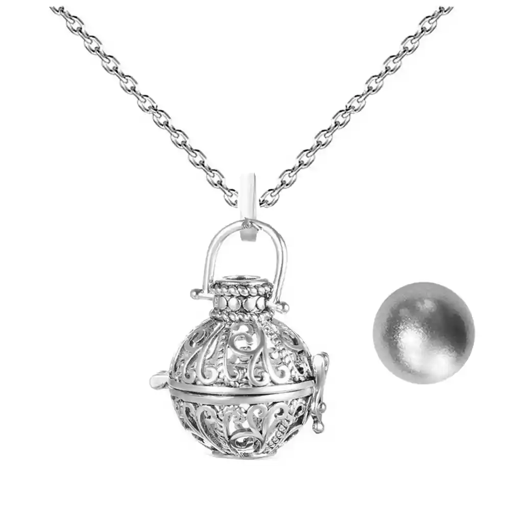 El llamador de ángeles con cascabel es una elegante y significativa pieza de joyería en forma de esfera, que en su interior contiene una pequeña esfera de color con un sonido similar a una campanita. Según la leyenda, este amuleto de protección atrae la presencia del ángel de la guarda de quien lo porta, brindando bienestar y armonía. Se recomienda su uso personal para conservar su energía y significado especial, ya que cada color de la esfera representa una intención diferente, permitiendo elegir el que mejor se adapte a las necesidades del usuario.Cada color del llamador de ángeles tiene un significado especial para quien lo porta:Plateado: Protección y equilibrio.Cada persona puede elegir el color que mejor se adapte a sus necesidades y deseos.//// El collar incluye estuche - El precio corresponde a un llamador con un solo cascabel ////Ficha TécnicaMaterial cadena : Acero InoxidableMaterial dije: Aleación de Zinc MetalMaterial del Cascabel: ABS - MetalLongitud cadena: 45 cmDimensiones del dije: 3 cm x 3 cmDimensiones del cascabel: 1.5 cm x 1.5 cmPara defectos de fábrica o derecho de retracto: Le recomendamos revisar el producto inmediatamente al recibirlo y antes de usarlo. No se aceptan solicitudes de retracto ni reclamaciones por defectos de fábrica después de haber sido utilizado. Cuenta con un plazo máximo de 5 días para reportar cualquier defecto de fábrica, como mal funcionamiento, piezas faltantes, rotas o cualquier otra anomalía.Para realizar una devolución, el producto debe entregarse en su empaque original en buen estado, con todos sus accesorios, documentos y sin daños.Cuidados y recomendaciones para conservar el producto: Evite el contacto directo con perfumes o cremas, no lo exponga al agua, manipúlelo con cuidado para prevenir caídas y límpielo regularmente para retirar la suciedad.