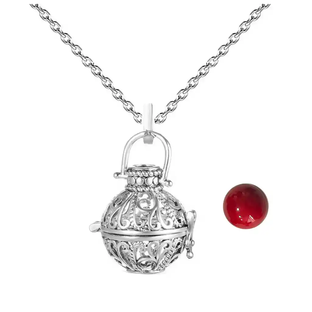El llamador de ángeles con cascabel es una elegante y significativa pieza de joyería en forma de esfera, que en su interior contiene una pequeña esfera de color con un sonido similar a una campanita. Según la leyenda, este amuleto de protección atrae la presencia del ángel de la guarda de quien lo porta, brindando bienestar y armonía. Se recomienda su uso personal para conservar su energía y significado especial, ya que cada color de la esfera representa una intención diferente, permitiendo elegir el que mejor se adapte a las necesidades del usuario.Cada color del llamador de ángeles tiene un significado especial para quien lo porta:Rojo: Fuerza y valentía.Cada persona puede elegir el color que mejor se adapte a sus necesidades y deseos.//// El collar incluye estuche - El precio corresponde a un llamador con un solo cascabel ////Ficha TécnicaMaterial cadena : Acero InoxidableMaterial dije: Aleación de Zinc MetalMaterial del Cascabel: ABS - MetalLongitud cadena: 45 cmDimensiones del dije: 3 cm x 3 cmDimensiones del cascabel: 1.5 cm x 1.5 cmPara defectos de fábrica o derecho de retracto: Le recomendamos revisar el producto inmediatamente al recibirlo y antes de usarlo. No se aceptan solicitudes de retracto ni reclamaciones por defectos de fábrica después de haber sido utilizado. Cuenta con un plazo máximo de 5 días para reportar cualquier defecto de fábrica, como mal funcionamiento, piezas faltantes, rotas o cualquier otra anomalía.Para realizar una devolución, el producto debe entregarse en su empaque original en buen estado, con todos sus accesorios, documentos y sin daños.Cuidados y recomendaciones para conservar el producto: Evite el contacto directo con perfumes o cremas, no lo exponga al agua, manipúlelo con cuidado para prevenir caídas y límpielo regularmente para retirar la suciedad.
