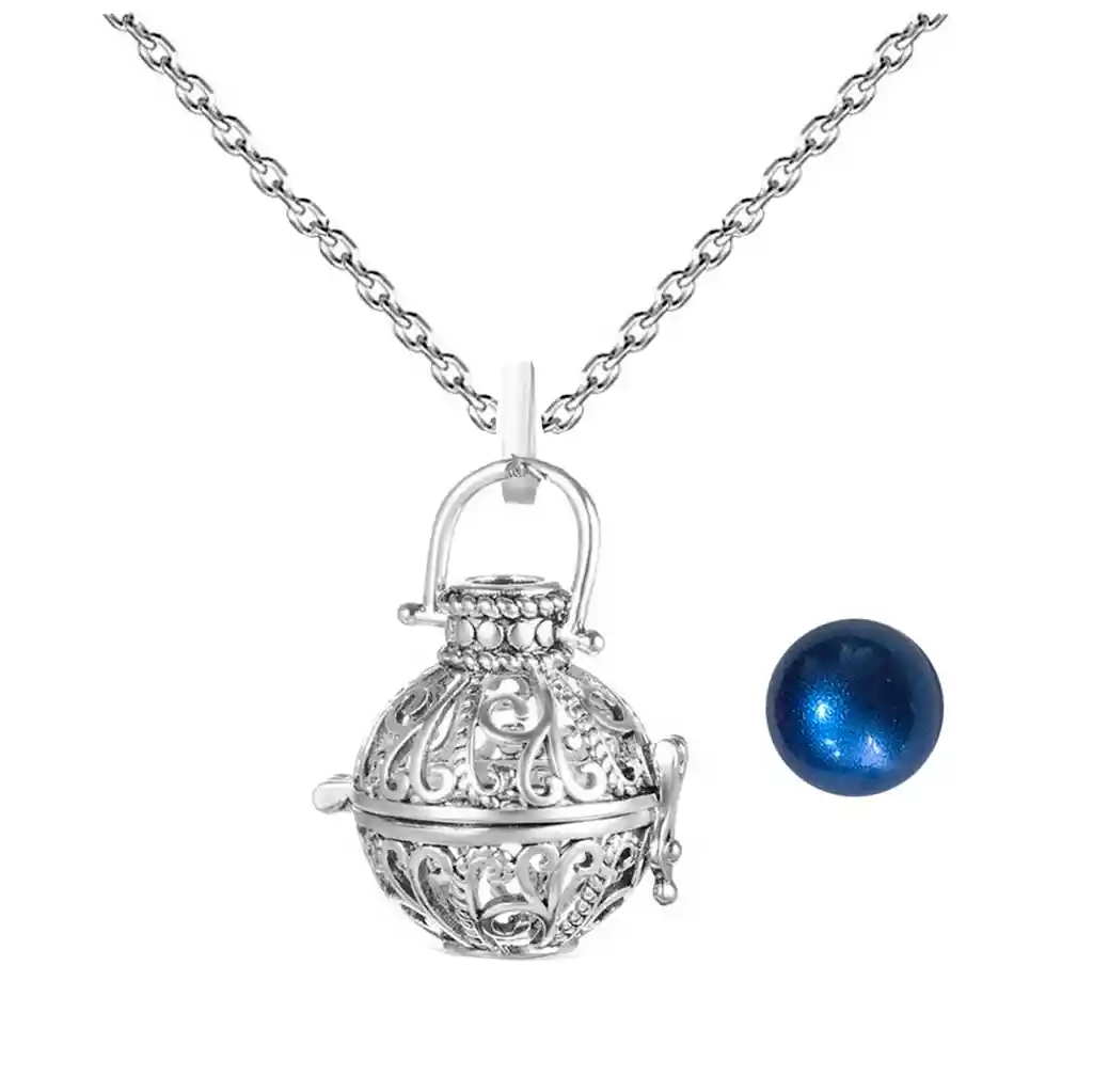 El llamador de ángeles con cascabel es una elegante y significativa pieza de joyería en forma de esfera, que en su interior contiene una pequeña esfera de color con un sonido similar a una campanita. Según la leyenda, este amuleto de protección atrae la presencia del ángel de la guarda de quien lo porta, brindando bienestar y armonía. Se recomienda su uso personal para conservar su energía y significado especial, ya que cada color de la esfera representa una intención diferente, permitiendo elegir el que mejor se adapte a las necesidades del usuario. Cada color del llamador de ángeles tiene un significado especial para quien lo porta: Plateado: Protección y equilibrio. Dorado: Abundancia y éxito. Azul Platinum: Serenidad y paz interior. Roja Platinum: Energía y pasión. Lila Platinum: Espiritualidad y transformación. Rosa: Amor y dulzura. Fucsia: Vitalidad y entusiasmo. Azul Oscuro: Sabiduría y confianza. Violeta: Intuición y crecimiento espiritual. Blanco: Pureza y armonía. Amarillo: Alegría y creatividad. Naranja: Entusiasmo y optimismo. Rojo: Fuerza y valentía. Negro: Protección y poder personal. Cada persona puede elegir el color que mejor se adapte a sus necesidades y deseos. //// El collar incluye estuche - El precio corresponde a un llamador con un solo cascabel //// Ficha Técnica Material cadena : Acero Inoxidable Material dije: Aleación de Zinc Metal Material del Cascabel: ABS - Metal Longitud cadena: 45 cm Dimensiones del dije: 3 cm x 3 cm Dimensiones del cascabel: 1.5 cm x 1.5 cm Para defectos de fábrica o derecho de retracto: Le recomendamos revisar el producto inmediatamente al recibirlo y antes de usarlo. No se aceptan solicitudes de retracto ni reclamaciones por defectos de fábrica después de haber sido utilizado. Cuenta con un plazo máximo de 5 días para reportar cualquier defecto de fábrica, como mal funcionamiento, piezas faltantes, rotas o cualquier otra anomalía. Para realizar una devolución, el producto debe entregarse en su empaque original en buen estado, con todos sus accesorios, documentos y sin daños. Cuidados y recomendaciones para conservar el producto: Evite el contacto directo con perfumes o cremas, no lo exponga al agua, manipúlelo con cuidado para prevenir caídas y límpielo regularmente para retirar la suciedad.