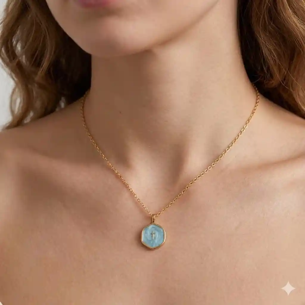Collar minimalista y lujoso con mini cruz dorada redonda, con un elegante colgante de acero inoxidable