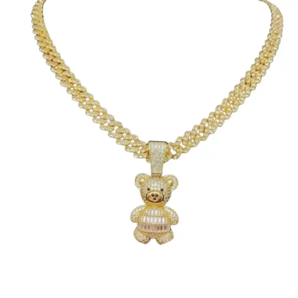 1 pieza Colgante con forma de oso de circonita cúbica de moda y collar con cadena cubana de aleación con strass de 9 mm, colgante de oso animal de estilo hip hop, rock y callejero, unisex.