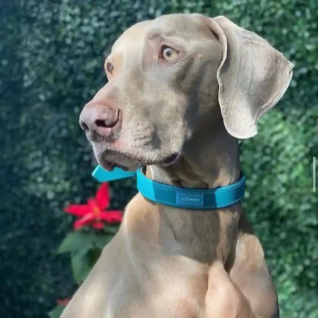 Material en reata de nylon, herrajes niquel plata, protector interno en collares y manija en traílla para mayor comodidad. Tamaño 62 cms.