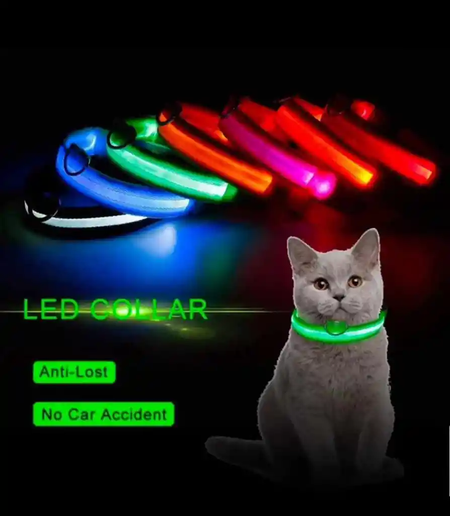 Collar LED recargable para mascota - Cómodo para tu mascota. - Evita que tu mascota se pierda en la oscuridad. - Resistente al agua. - Adapta el modo del luz que prefieras 3 modos de luz o apagado. - Recargable con USB (incluye cable). Funcionamiento Presione el interruptor y seleccione el modo de luz que desee luz intermitente rápida, Luz intermitente lenta, Luz fija o Sistema apagado. Para cargar el dispositivo, conecte el cable, luego encienda y apague la luz. Sabrá que esta cargando cuando vea una leve iluminación roja.