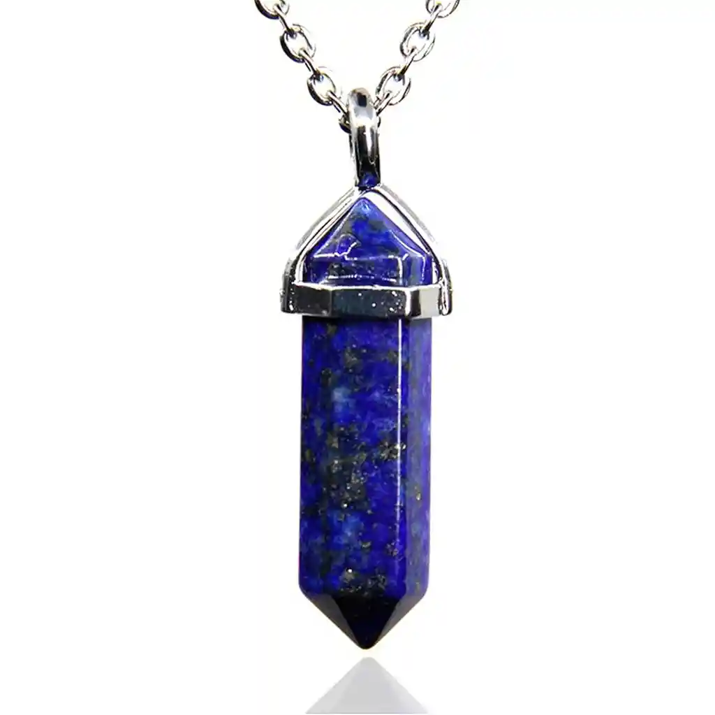 El lapislázuli abre el tercer ojo y equilibra el chacra de la garganta. Es una piedra que ayuda a liberar rápidamente el estrés, aportando una paz profunda. Posee una enorme serenidad y trae la clave de la realización espiritual. Es una piedra protectora que contacta con los espíritus guardianes. Los hermosos accesorios en particular los collares de péndulo marcan tendencia en la actualidad con diseños exclusivos, modernos juveniles que podrás lucir y combinar con cualquier look luciendo bella todos los días. Ofreciendo una amplia gama de productos para todos los gustos, siéntete segura de comprar con nosotros los productos son idénticos a las fotografías. Nota: Los Tonos de la piedra pueden variar. \_El collar incluye estuche_\_\_\_\\_ FICHA TÉCNICA Longitud cadena: 50 cm Material cadena: Acero Inoxidable Material dije: Soporte Metálico- Piedra Natural Cuarzo Dimensiones del Cuarzo 2.3cmx0.9cm \\\\\\*Términos de garantía:\\\\\\ Para defectos de fábrica o retractos: Por favor revise el producto apenas lo reciba y antes de usarlo. No aplican ley de retracto o defectos de fábrica luego de usar el producto. Se manejan máximo 5 días para reportar defectos de fábrica (por ejemplo, producto funciona mal, piezas faltantes, rotas, etc). Para hacer efectiva la devolución el producto debe devolverse con el empaque original, el cual debe estar en buen estado, incluir todos los documentos y las partes completas y sin daños. Los cuidados y recomendaciones para mantener un producto en buen estado son los siguientes: No aplicarle perfumes ni cremas directamente, no mojarlos, no dejarlos caer y procurar limpiarlos para retirar suciedad.
