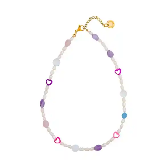 Collar elaborado a mano con cuarzos, perlas cultivadas y hermosos corazones. Los cuarzos se cree que tienen cualidades de sanación, protección y la habilidad de controlar energías. Cada color tiene un significado y habilidad detras muy importante. Por otro lado la perla cultivada es considerada como símbolo de paz, amor y lealtad, es ideal para tratar las angustias y los miedos. Debido a su calidad y brillo aporta elegancia y refleja la pureza de quién la porta. Características: 40cm. Moneda de Castellano enchapado en oro. Empaque de regalo. Llévalo para usarlo con tus looks del día a día y atrévete a combinarlo con nuestras pulseras de piedras naturales.