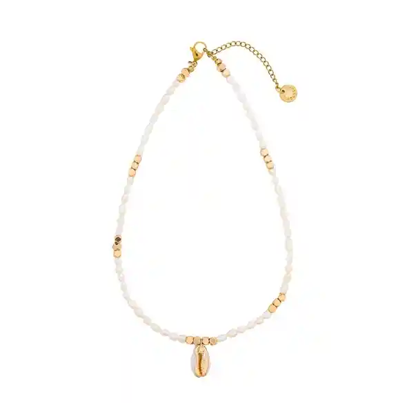 Collar elaborado a mano con perlas cultivadas y concha de mar dorada. La perla cultivada es considerada como símbolo de paz, amor y lealtad, es ideal para tratar las angustias y los miedos. Debido a su calidad y brillo aporta elegancia y refleja la pureza de quién la porta. Las conchas simbolizan paz y tranquilidad, ademas ofrece protección y fuerza justamente como la concha lo hace en la naturaleza. Características: 40cm. Moneda de Castellano enchapado en oro. Empaque de regalo. Llévalo para usarlo con tus looks del día a día y atrévete a combinarlo con nuestras pulseras de piedras naturales.
