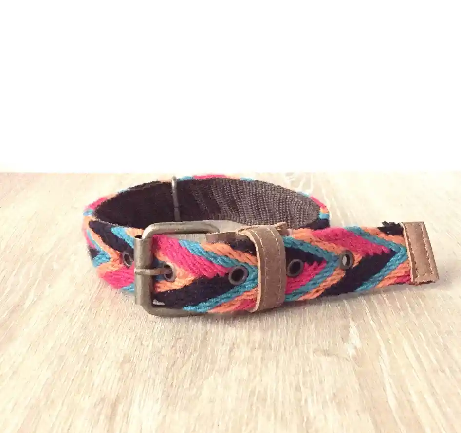 Collares elaborados con tiras artesanales hechas a mano por hombres indígenas provenientes de la comunidad indígena Wayuu. en una técnica llamada Assanushi. con la que en la antigüedad decoraban los caballos. Collar Mediano – Para cuello medida de: 28cm – 31cm – 34cm – 37cm – 40cm
