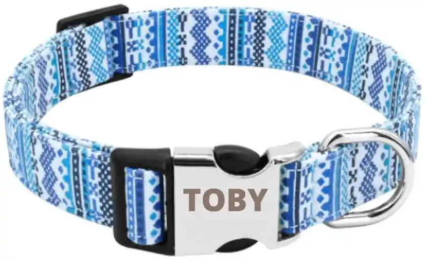 Perfecto para pasear a tu mascota, brindarle seguridad y comodidad, el collar tiene un divertido diseño de moda étnica y cuenta con un detalle único de identificación para perros: Poder personalizar la chapa de metal con el nombre de tu mascota y número de contacto. Además, cuenta con argolla en hierro soldado ultra resistente y hebilla plástica de acetal para que puedas ajustar el largo del collar.