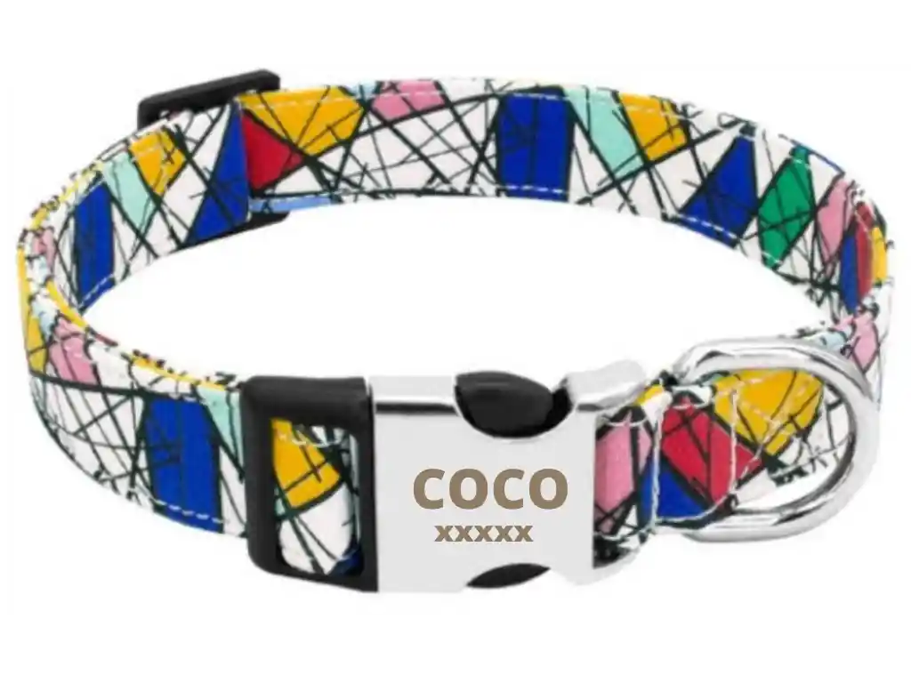 Perfecto para pasear a tu mascota, brindarle seguridad y comodidad, el collar tiene un divertido diseño de moda étnica y cuenta con un detalle único de identificación para perros: Poder personalizar la chapa de metal con el nombre de tu mascota y número de contacto. Además, cuenta con argolla en hierro soldado ultra resistente y hebilla plástica de acetal para que puedas ajustar el largo del collar.