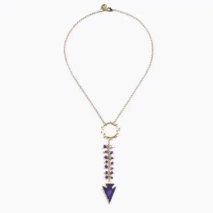 Tejido artesanal mini ágatas, y dije drusa natural. Cadena con baño en oro