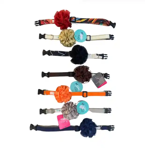 Collar con rosa para perritas gaticas medianas. !!!!Envíanos un mensaje confirmando el color deseado!!! Elaborado en reata suave de Nylon con rosa cosida, tensor plástico para ajustar el collar a la medida del cuello de tu perro y media argolla en hierro para sujetar la traílla. Mide a tu perro y añádele 2 cm más para la comodidad de tu mascota. Si estás entre 2 tallas te aconsejamos elegir la más grande. Talla M: desde 24 centímetros a 34 centímetros Cuidados Lavar a mano con agua y jabón. Secar al aire libre. Los herrajes no son inoxidables. Producto hecho en Colombia.