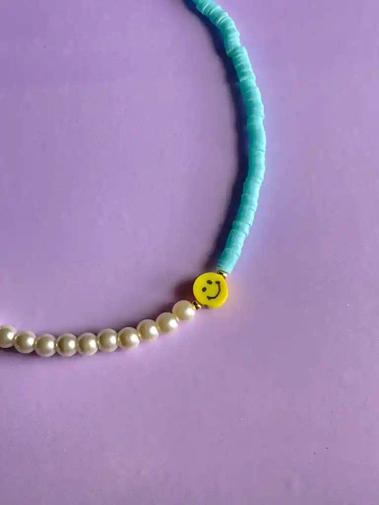 Collar Smiley Azul con Perlas