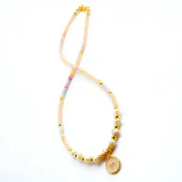 Collar de 40cm elaborado con murano, perlas naturales y fimo ♥