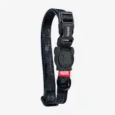Collar ajustable para gato con diseño inspirado en Black Panther. Elaborado con poliéster suave y liviano, incluye sistema de cierre “breakaway” que se libera fácilmente para mayor seguridad del gato.