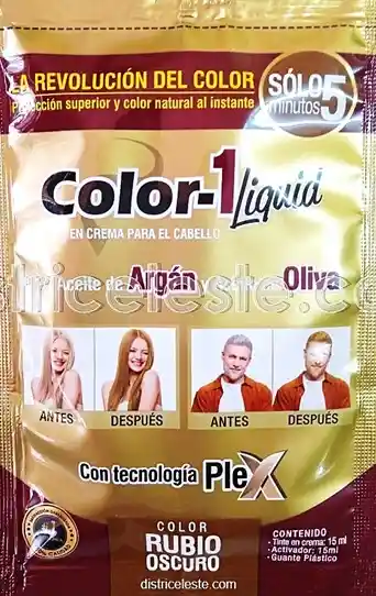 Color 1 Liquid, Rubio Oscuro, Tinte en Crema para Cabello, Sachet 30 Ml. - Con aceite de Argán y Oliva.