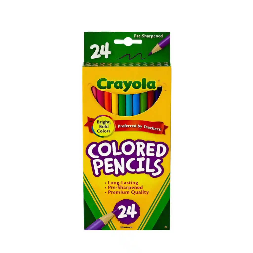 Set de 24 lápices de colores Crayola con tonos brillantes, minas suaves y duraderas. No tóxicos y preafilados, ideales para dibujo y arte escolar.