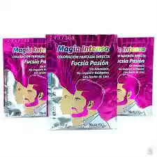 Magia intensa es una coloración directa, semipermanente sin amoniaco, que no requiere oxidante. Da como resultado tonos fantasia de alta luminosidad y brillo. Gracias a su contenido de aceite de lino rico en omega 3, 6 y 9 previene la oxidación y protege la fibra capilar de los radicales libres. Modo De Uso Decolorar el cabello previamente hasta lograr un fondo de aclaración amarillo pálido. Lavar solo con shampoo sin acondicionar. Aplicar el tono elegido de MAGIA INTENSA en las secciones decoloradas, masajear suavemente y dar un tiempo de expocision de 10 q 15 minutos según la profundidad deseada, controlar visualmente. Luego enjuagar con abundante agua. Aplicar tratamiento cabello tinturado. Enjuagar y secar