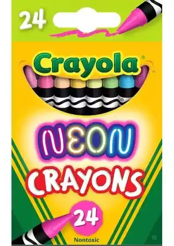 CRAYONES DE NEÓN: Cuenta con 24 crayones Crayola en colores neón brillantes. FUNCIONA EN PAPEL CLARO Y OSCURO: ¡Dibuja y garabatea en papel claro u oscuro con estos elementos esenciales para colorear de neón! DURADERO Y DE LARGA DURACIÓN: Los 24 crayones de este juego tienen doble envoltorio para mayor durabilidad. SUMINISTROS ESCOLARES: ideal para colorear libros, proyectos escolares y más.