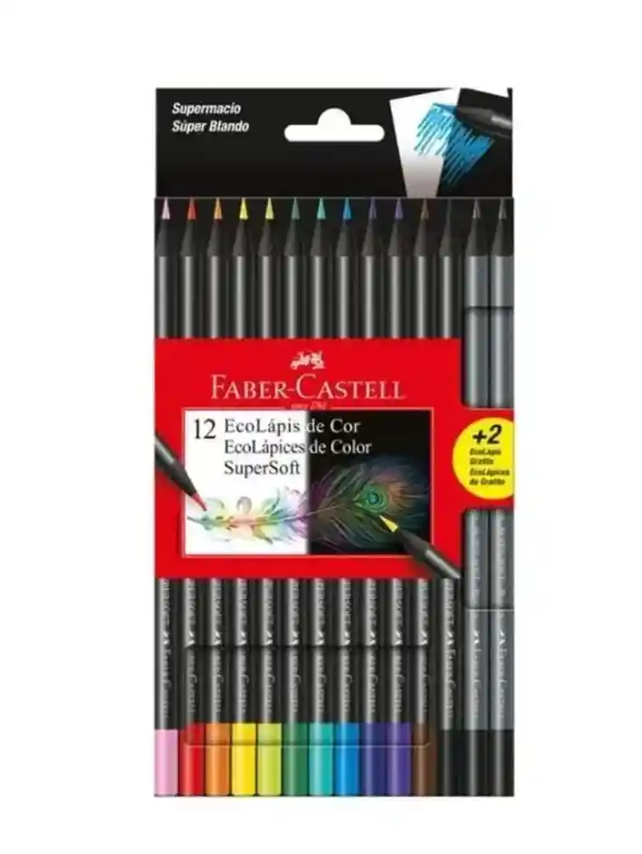 Caja con 12 unidades en tonos vivos y brillantes, tienen excelente cobertura sobre papeles claros y oscuros, su mina permite un trazo suave y resistente. No tóxico. Incluye dos lápices de grafito adicionales. EAN 7891360662471