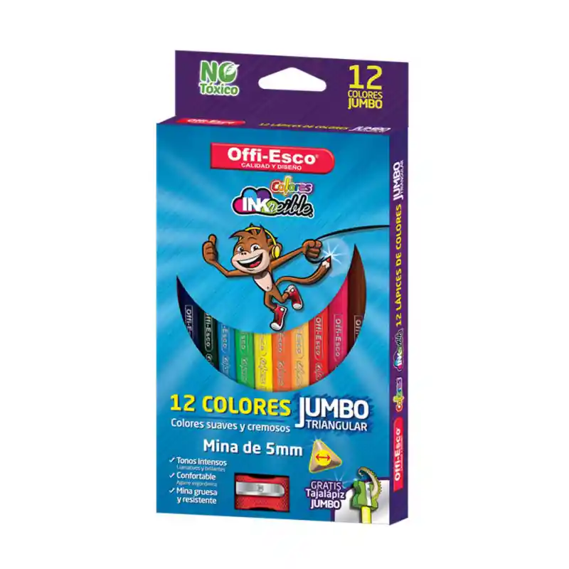 -No contiene madera de bosques tropicales -Producto no toxico -Madera de fácil tajado -Colores suaves y cremosos -Tonos intensos llamativos y brillantes -Colores triangulares mina gruesa y resistente -Colores confortables agarre ergonómico -Mina de 5 mm -Gratis tajalápiz jumbo