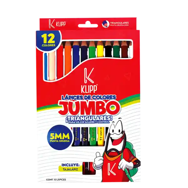 Colores Jumbo Triangulares x 12 COLORES GRANDES INCLUYE TAJALAPIZ GRANDE