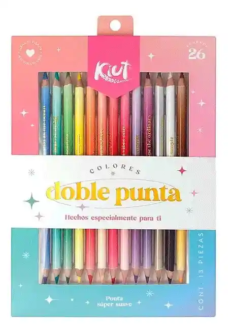 America Store te trae Colores Kiut Doble Punta X 13 ¡Colores Kiut! Ahora con mina más suave que permite hacer mejores difuminados, su cuerpo trae un mensaje especial y tono degrade con detalles doraditos Llena tu mundo de color con Kiut" - colorea sin dejar espacios en blanco - agrégale lindos detalles a tus apuntes - gama de color cuidadosamente seleccionada para ti - punta suave y resistente - incluye su caja COLORES DOBLE PUNTA KIUT X 13/26 Alto: 23,5 Centímetros Ancho: 17 Centímetros Largo: 1 Centímetro