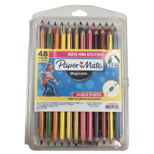 elaborado en madera, cuenta con una mina resistente de 4.0 mm con máxima suavidad por su alto contenido en cera. 24 lapices doble punta para un total de 48 colores Estos colores sirven para desarrollar tus habilidades artísticas con estos colores suaves, fabricados con los más altos estándares de calidad para que puedas expresar todo tu talento y creatividad sin límites. Esta línea es ideal para inspirar e incentivar a jóvenes artistas a dibujar, colorear y bocetar con una amplia variedad de colores.