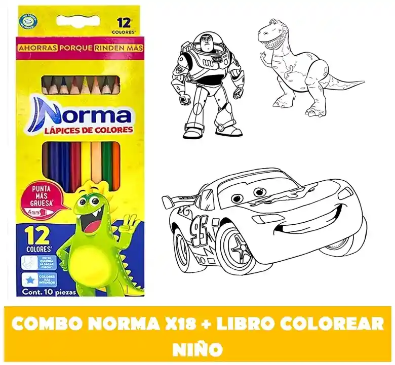 Colores Norma x 12 colores + libro colorear niño