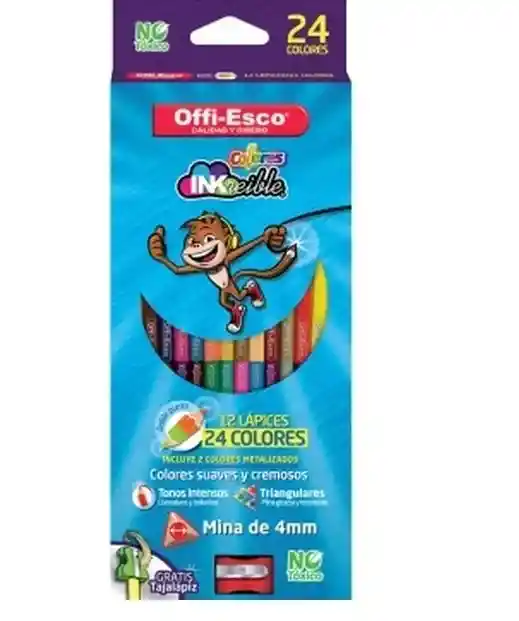 Colores Offi Esco Triangular Doble Punta 12 lapiz, 24 colores Oe-142. mina 4 mm, gratis tajalapiz EAN 7709990007770