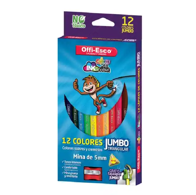 colores Marca offi-esco Jumbo x12 especial para cuando los niños están empezando a utilizar lapices.