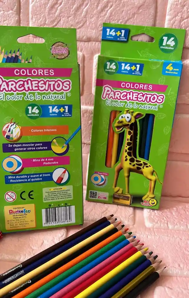 COLORES PARCHESITOS 4MM X14 + LAPIZ + SACAPUNTA COD.1912