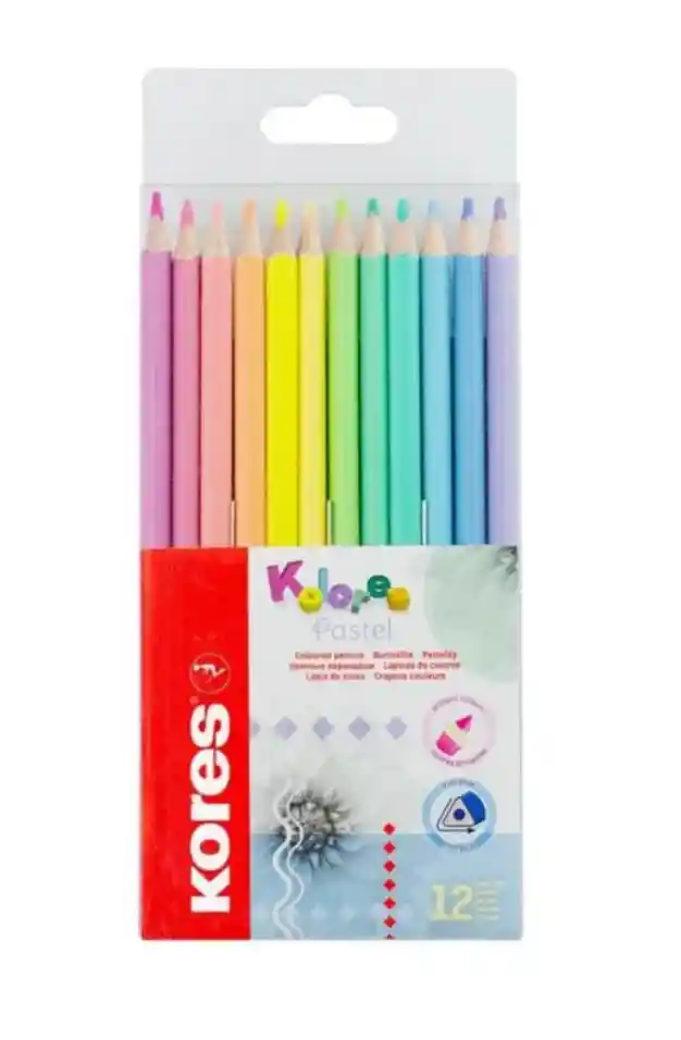 Colores Kores Pastel x 12 Unidades – – Fantásticos lápices de colores en tonos de colores pastel brillantes y de moda, de forma triangular, elaborado con madera de alta calidad para un fácil afiliado, pigmentos extra de color pastel para colores intensos y vibrantes. No tóxico