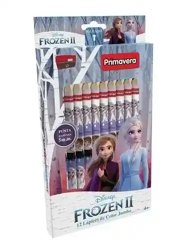 Colores Primavera Frozen Estampados Jumbo Punta Gruesa 5 mm, Caja X 12, incluye tajalapiz, mina gruesa de 5mm. EAN 7707275925276