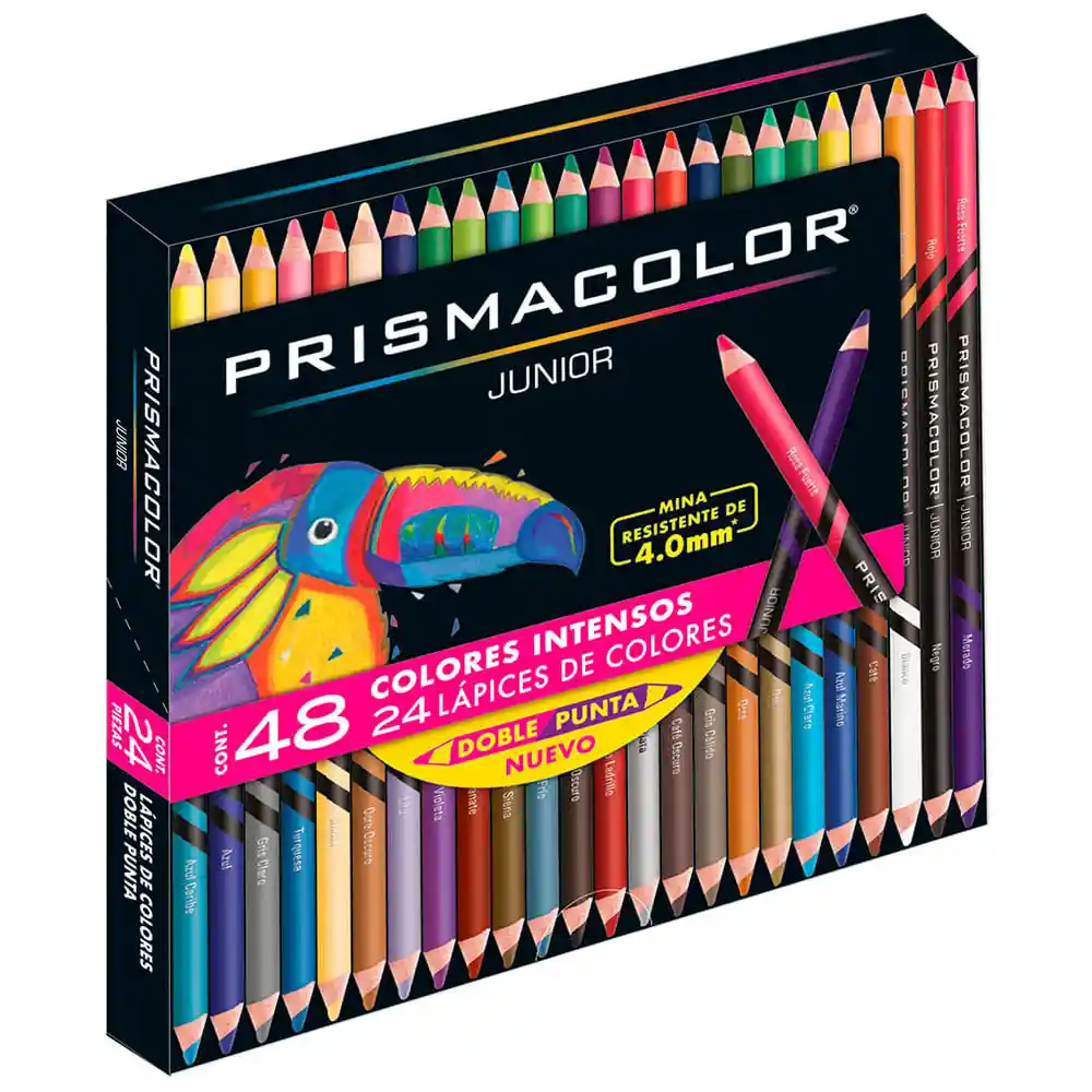 Contiene 24 Unidades. Lápices de Colores Bicolores Redondos Prismacolor Junior Intensos 4.0 mm Más Color Más Diversión Sólo Con el Diseño Práctico de Los Nuevos Lápices de Colores Bicolores Redondos Prismacolor Junior Intensos 4.0 Mm. Disfruta de Sus Minas Suaves y Resistentes de 4.0 mm Que te Brindan Tonalidades Vibrantes Para Inspirar tu Creatividad. Podrás Colorear Trazar Dibujar o Rellenar Sin Perder el Brillo Original y Mezclar Sus Colores Para Crear Nuevos Tonos. Maximiza su Durabilidad Con Sus Nuevos Canales Suaves Que Evitan Romper la Punta al Marcar o Trazar. Obtendrás 24 Lápices de Colores Con Doble Punta y 48 Tonos Intensos Diferentes Para Transformar tu Inventiva al Instante. &Iexclgrandes Colores Para Grandes Artistas! Lápices de Colores Bicolores Redondos Prismacolor Junior Intensos 4.0 mm Modelo: 2068524 Cantidad: 1 Juego Con 24 Piezas Tipo: Policromático Especificaciones: Lápices de Colores, Doble Punta, 48 Tonos Brillantes Diferentes, Uso Escolar, Ideal Para Dibujar y Colorear, Minas de 4.0 Mm