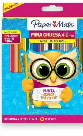 18 lápices de Colores unipunta • Mina gruesa de 4.0 mm resistente • Incluye colores: Metálicos, pastel