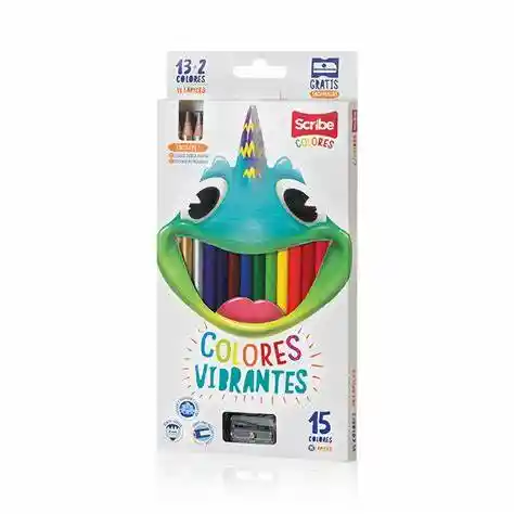 Colores Scribe x15 + Tajalápiz Excelente suavidad Punta gruesa de 4.0mm Minas resistentes Colores vibrantes Incluye 1 Color Doble Punta 2 Colores Metalizados