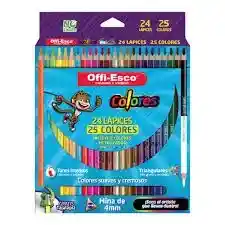 Colores Triangulares 24 lápices / 25 colores Colores Triangulares Incluye 2 colores metalizados Colores suaves y cremosos Mina 4 mm Tonos intensos llamativos y brillantes 24 lápices / 25 colores Unicolor Gratis tajalápiz Caja x 48 Sets