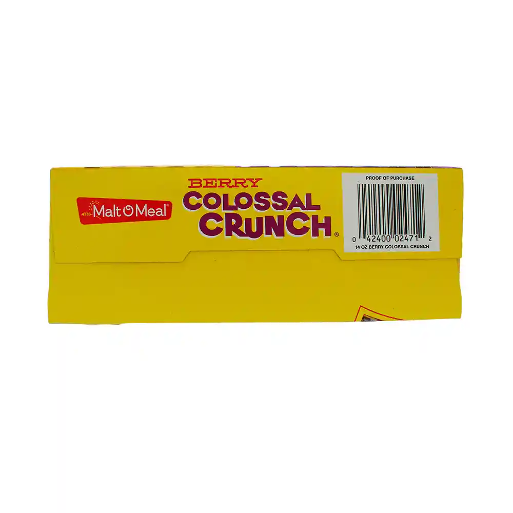 Berry Colossal Crunch es un delicioso regalo en tu tazón de desayuno o por el puñado en cualquier momento del día, este maíz endulzado y cereales de avena está equipado con delicioso sabor a bayas.