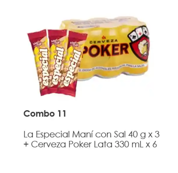 La Especial Maní con Sal 40 g x 3 + Cerveza Poker Lata 330 mL x 6