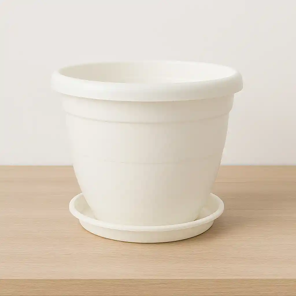 Matera plástica redondeada en color blanco marfil, ideal para decorar espacios interiores y exteriores con un estilo limpio y elegante. Su forma curvada aporta suavidad visual, mientras que el plato incluido en el mismo color brinda funcionalidad al evitar derrames. Perfecta para plantas ornamentales o aromáticas.Matera plástica redondeada en color blanco marfil, ideal para decorar espacios interiores y exteriores con un estilo limpio y elegante. Su forma curvada aporta suavidad visual, mientras que el plato incluido en el mismo color brinda funcionalidad al evitar derrames. Perfecta para plantas ornamentales o aromáticas. Diámetro: 27cm Largo: 24cm