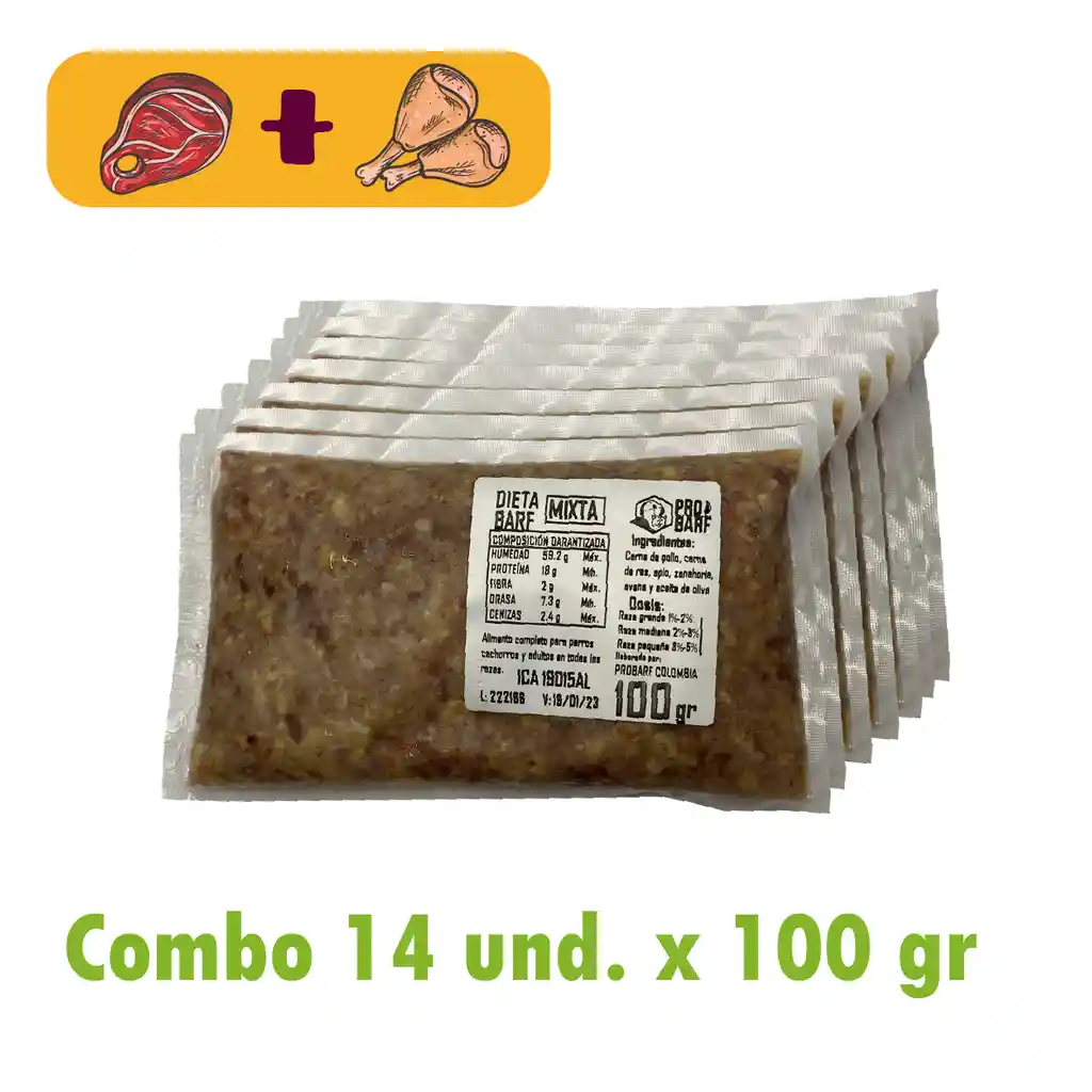 Combo 14 porciones de 100 gramos, sabor mixta