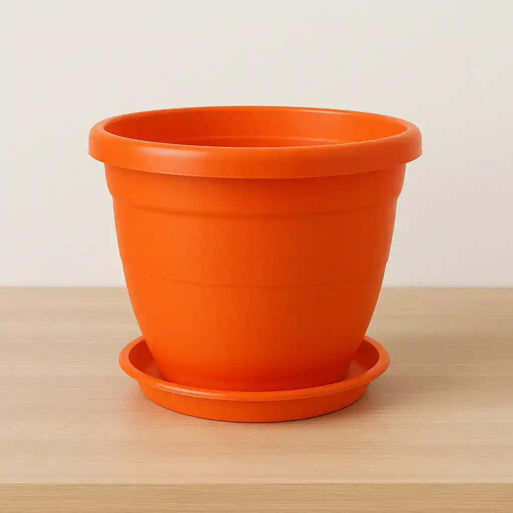 Matera plástica redondeada en vibrante color naranja, diseñada para aportar energía y color a cualquier ambiente. Su forma curva y plato a juego no solo aportan estética, sino también funcionalidad. Ideal para plantas decorativas que desean destacar. Diámetro: 27cm Largo: 24cm