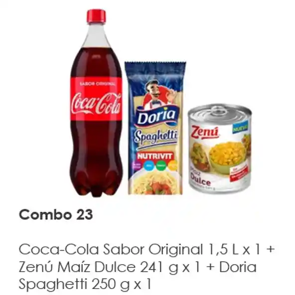 Coca-Cola Sabor Original 1,5 L x 1 + Zenú Maíz Dulce 241 g x 1 + Doria Spaghetti 250 g x 1